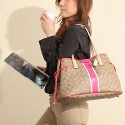 ビビット感のあるピンクを縦型のストライプにした可愛いアクセントのキャリーオール。キュートな大人女子のセレクトバッグです。