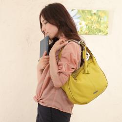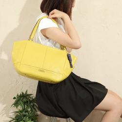 レザーの高級感とイエローカラーが目を引く素敵なショルダーバッグです。